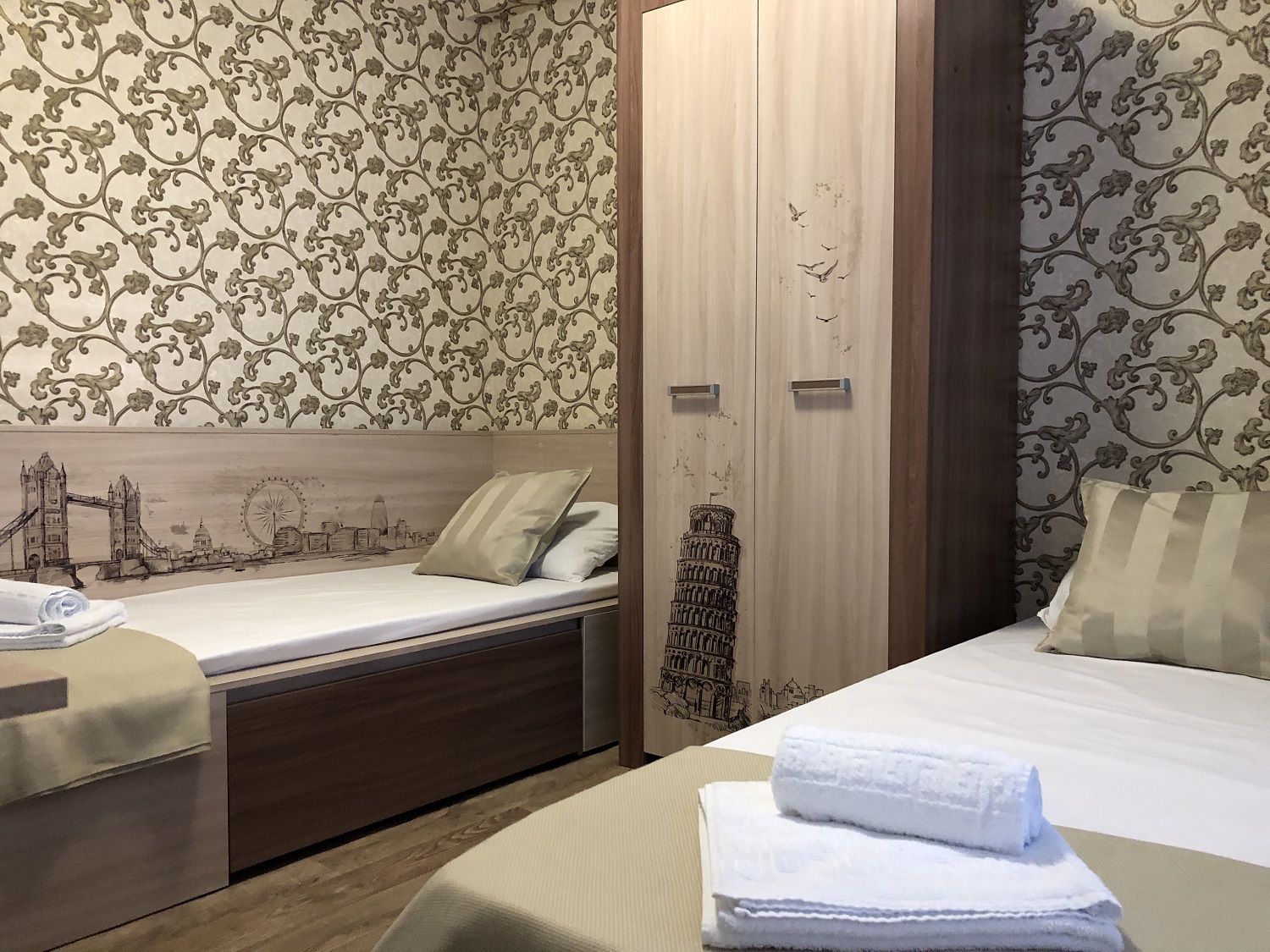 - двуспальная и две односпальных кровати,